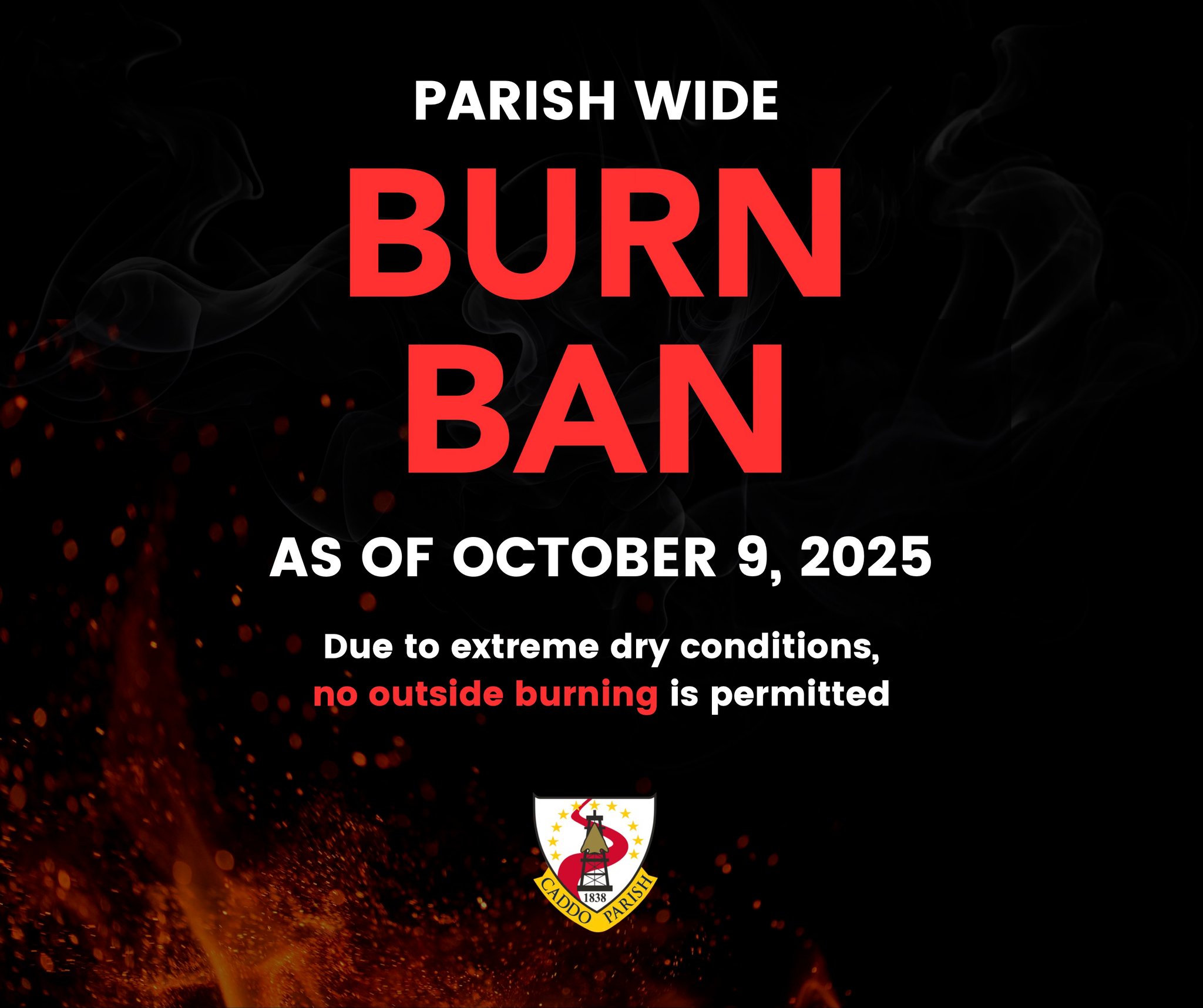 October 9, 2025As of today, October 9, Caddo Parish is under a Parish wide burn ban due to the extreme dry conditions and no significant chance of rain in the long range forecast. As soon as conditions improve,...