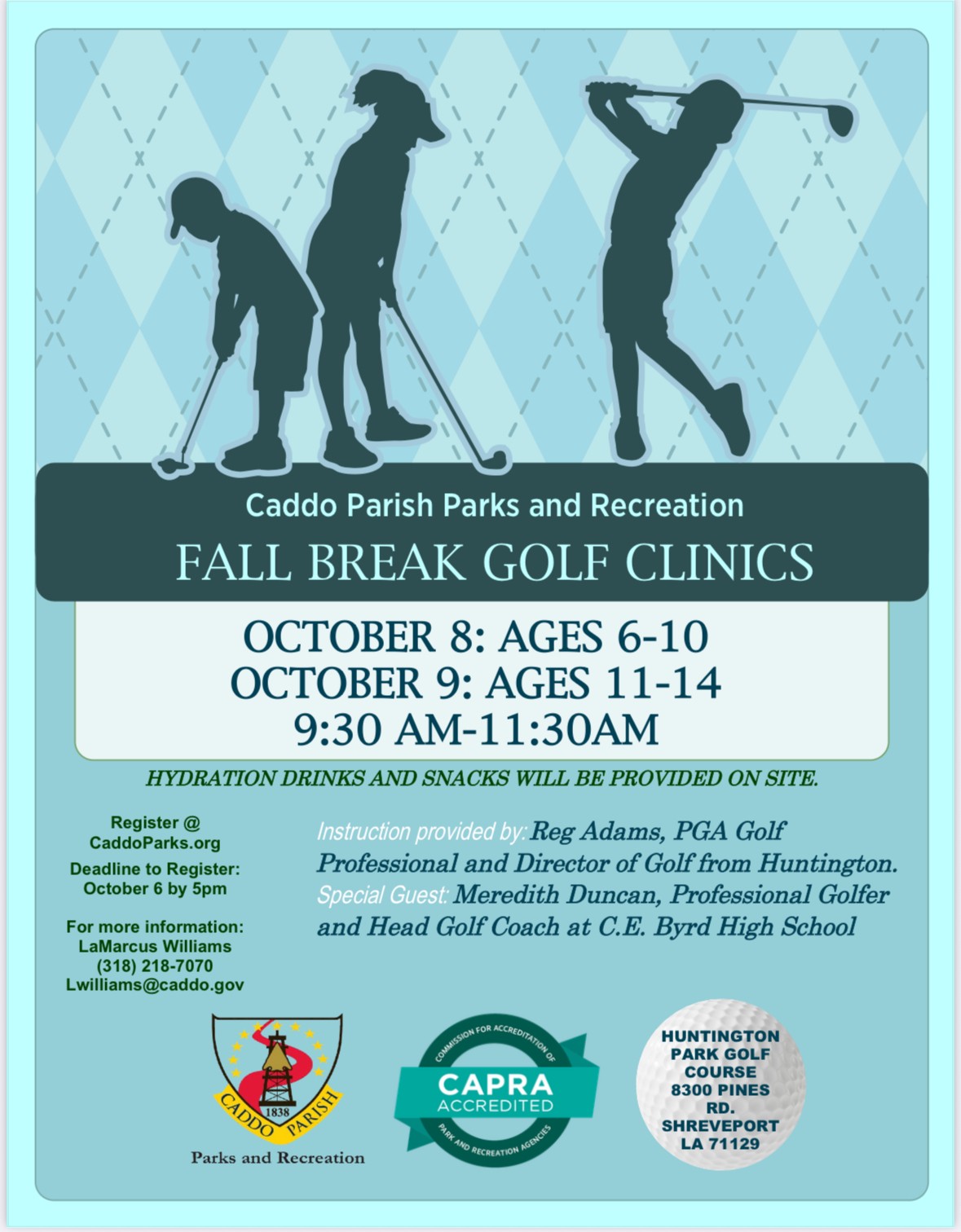 CADDO PARISH PARKS AND RECREATION FALL BREAK GOLF CLINICS